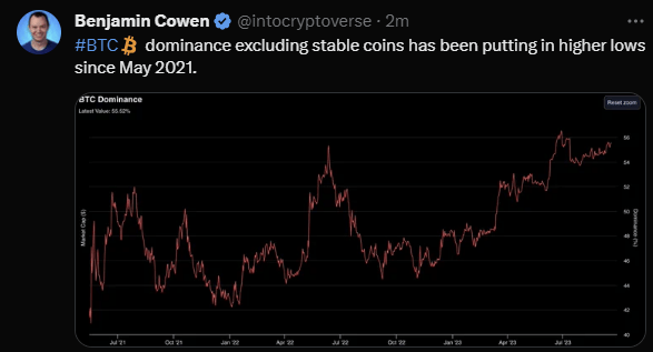 Bitcoin Dominance continues to increase.