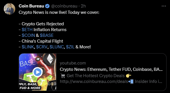 Coin Bureauโs weekly news video is live. Check it out - theyโre one of my favorite crypto Youtube channels.